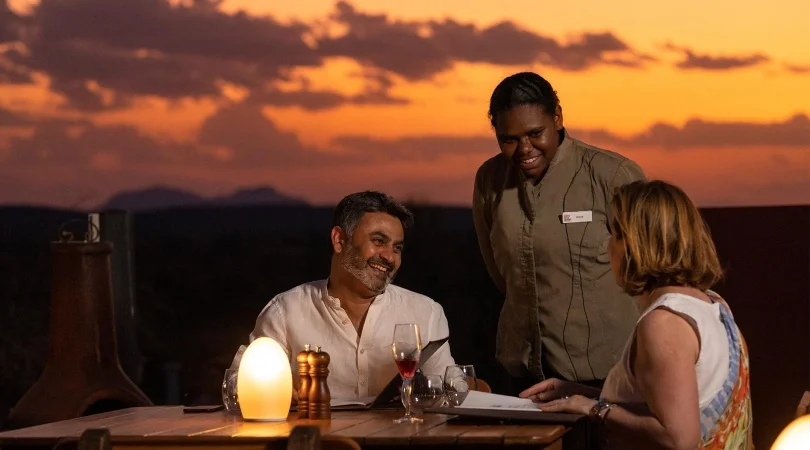地元のアナング族の言葉で「美しい砂丘」を意味するタリ・ウィル(Tali Wiru)には、サザン・デザートの空の下での上質な食事の魅力が凝縮されています。壁のないオープンエアのレストランからは、ウルルやカタジュタのドームの壮大な眺めを楽しむことができます。