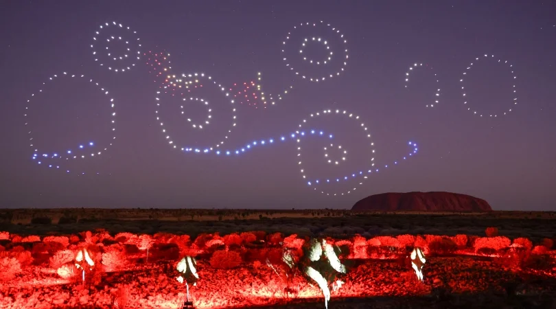 ドローンやレーザー、プロジェクションマッピング等を使って、現地先住民アナング族に伝わる物語を夜空に描き出します。