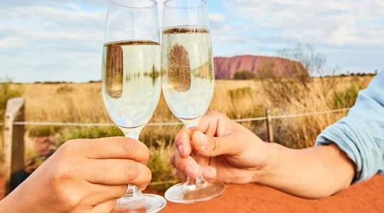 サンセットに照らされて、真っ赤に染まるウルルをご覧頂けます。サンセット鑑賞の会場では、スパークリングワインやビール、フィンガーフードをご準備しておりますので、優雅な気分に浸りながら世界遺産ウルルを心ゆくまで担当下さい。