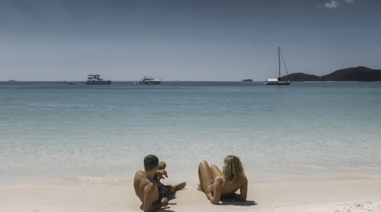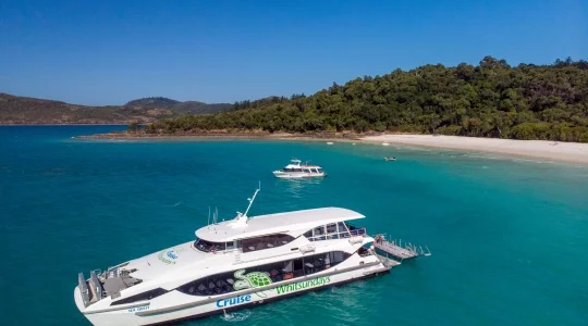 ・空港完備のクルーズ船に乗ってホワイトヘブンビーチへ。約2時間の滞在をお楽しみ下さい。・スティガースーツもご用意しております。
