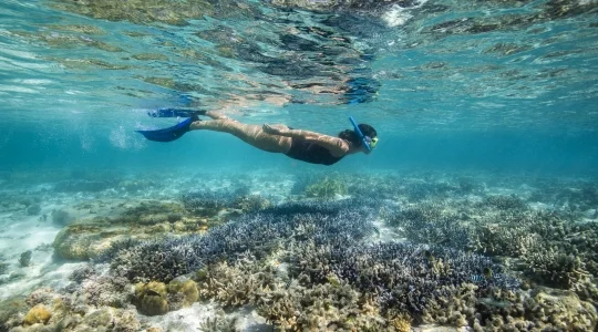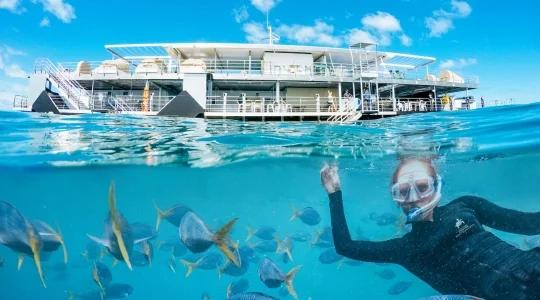・有名なハーディーリーフをシュノーケリング(またはダイビング)でお楽しみ下さい。全てのお客様にシュノーケル器具の貸し出しあり。