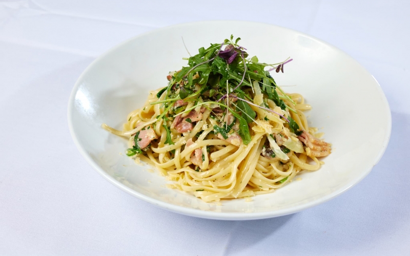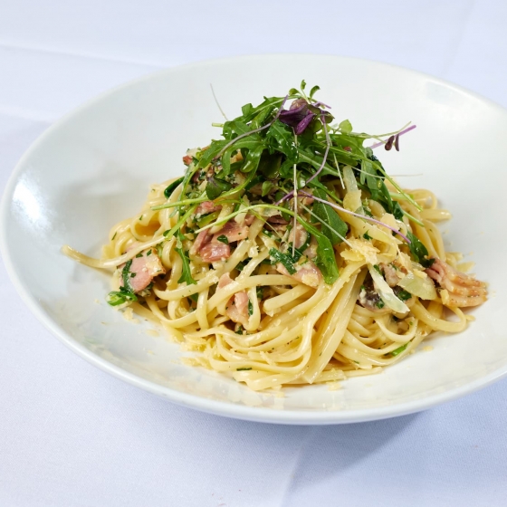 ベーコンとマッシュルームのリングイネ
