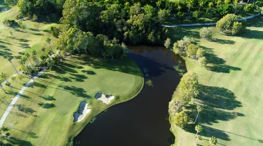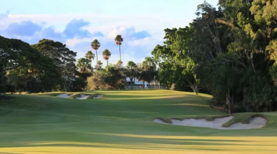 高級総合リゾート内にある原生林に囲まれた名門ゴルフコース。サンクチュアリーコーブ内には、メンバーと宿泊者のみ利用可能な”パインズ”と一般にも開放されている”パームス”の2種類のコースがあります。