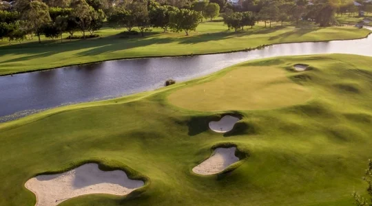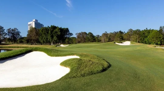 アメリカンスタイルのホテルに隣接する国内外のゴルファーに人気のインターナショナルリゾートコース。フラットでシンプルなコースレイアウトなのでボールを曲げても見つけやすくスムーズにラウンドできます。ほとんどのティーグランドからグリーンを見渡せるので、初めての方でもコースマネージメントがしやすいです。