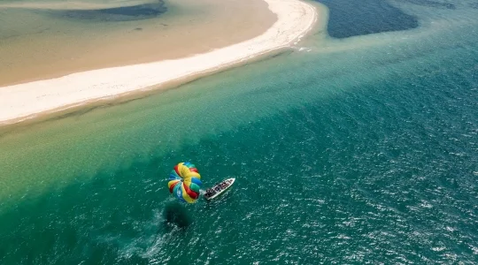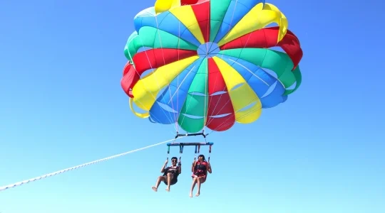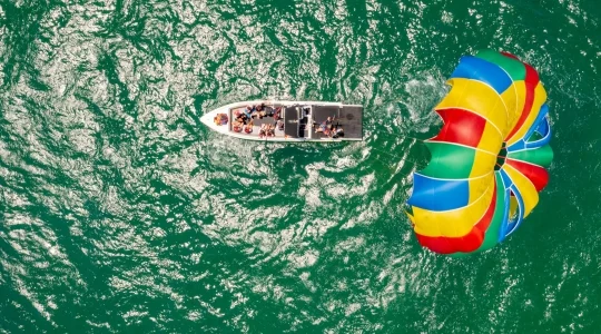 1年中気軽に楽しめて空からの絶景が感動的なパラセーリングは一押し!