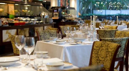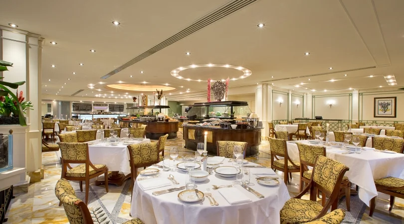 パラッツォ・ヴェルサーチホテル内レストラン イル・バロッコ・レストランでの優雅かつ豪華なシーフードビュッフェ。