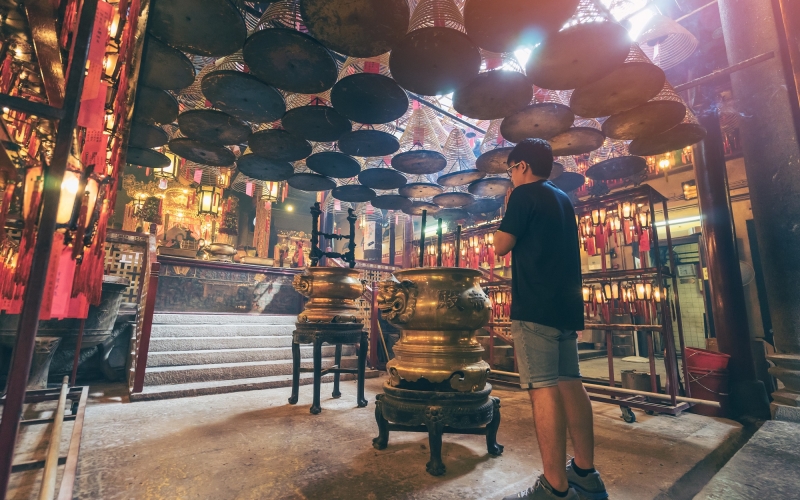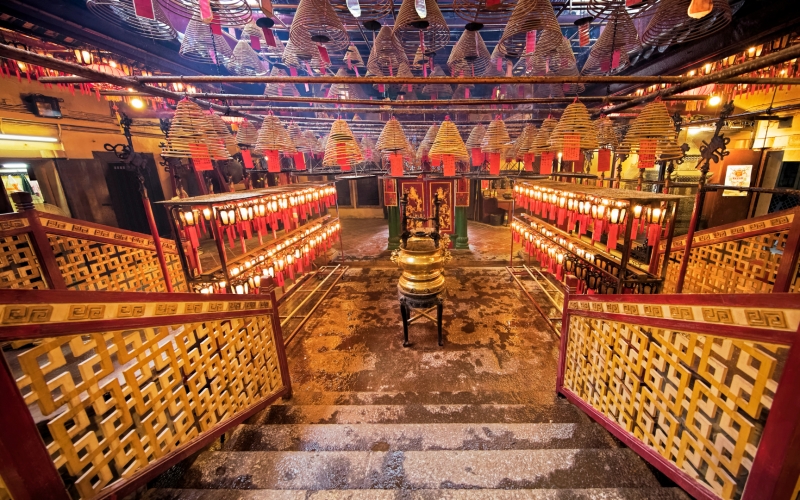 香港最古の廟で学問の神様である文昌帝の他、観音やそのほかの神々も祀られています。廟内には大きな先行が天井から吊り下げられる姿は圧巻です。赤のコントラストが綺麗でフォトジェニックスポットとしても有名です。