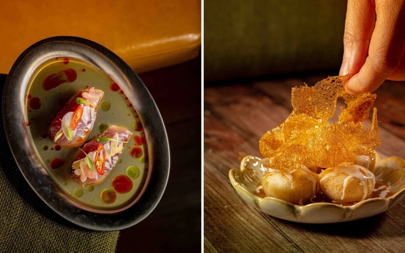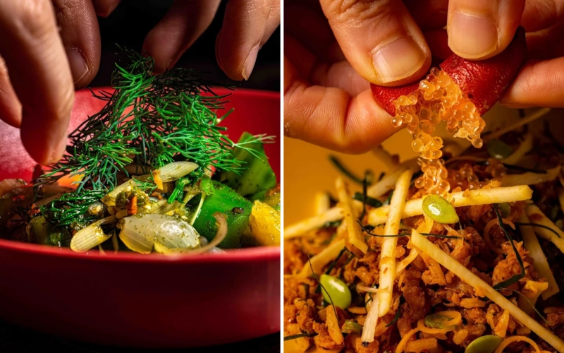メニューは、“神聖なお米”を中心に、唐辛子・ココナッツ・魚醤・パームシュガーの5つの食材で構成。 昔ながらの食材を使いながらも、見た目も味もユニークで、現代的なスタイルが光る一皿一皿が魅力です。