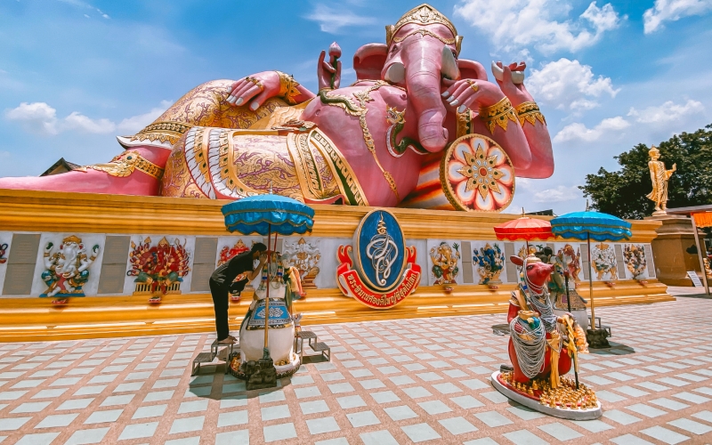 ピンクガネーシャ(ワット・サマーンラッタナーラーム)到着(約1時間)