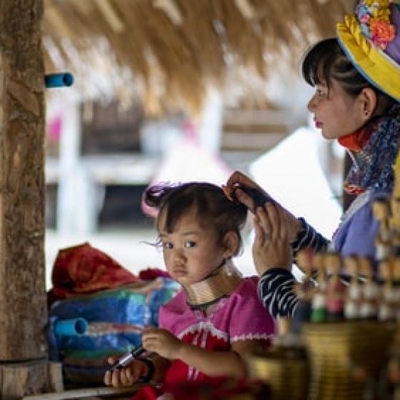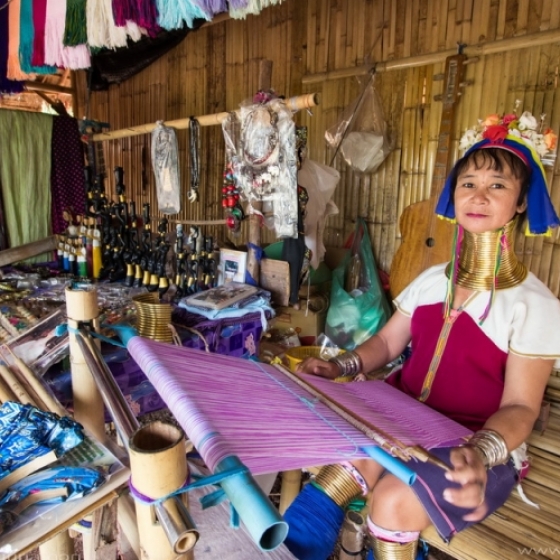 首の長い女性が金色の首輪をつける姿が有名な首長族(カレン族)。本来は、タイ北部やミャンマーの山岳部に住む彼らですが、バンコク郊外に一族でやってきました。バンコク発の日帰りツアーではこれまで会えなかった首長族に会いにいけます。
