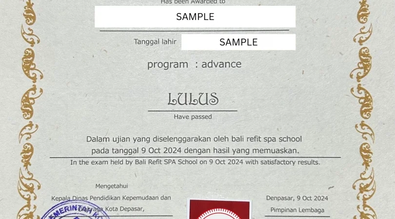 テスト受講後、バリ州政府の認定書を受け取れます