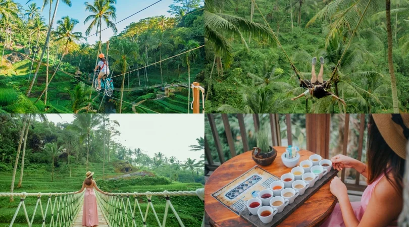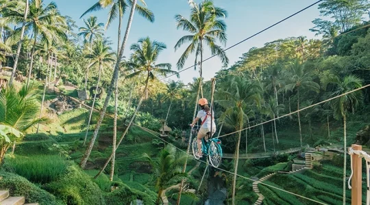 写真映え間違いなしのスイング体験、棚田ビューの空中滑走スカイバイク、絶景を嗜みながらコーヒーの試飲体験、その他フォトジェニックポイントなどなど、ライステラスと一緒にお写真を撮るなら相性ばっちりなアクティビティをご用意。さらには、ウブドマーケットとモンキーフォレスト通りで自由時間もご案内可能です。『テガラランの棚田』をたっぷり堪能して頂けるツアーです。
