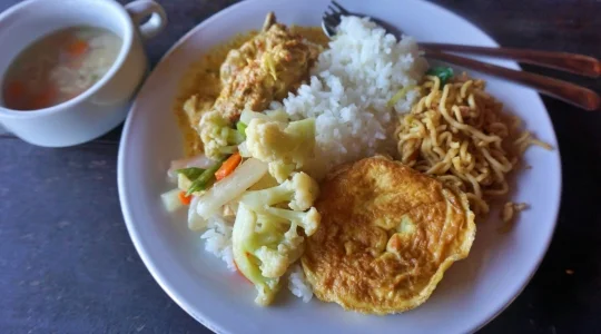 ローカルビュッフェスタイルのランチをお召し上がりください。パンダバスでは安心の専用テーブルを確保致しております。