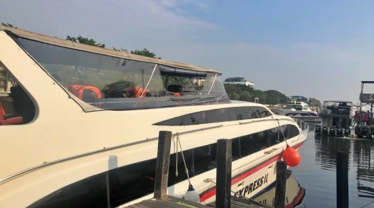 アンチョール港出港。パンダバスの専用ボートでセパ島へ。