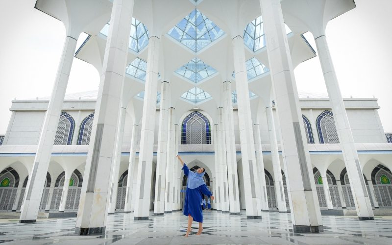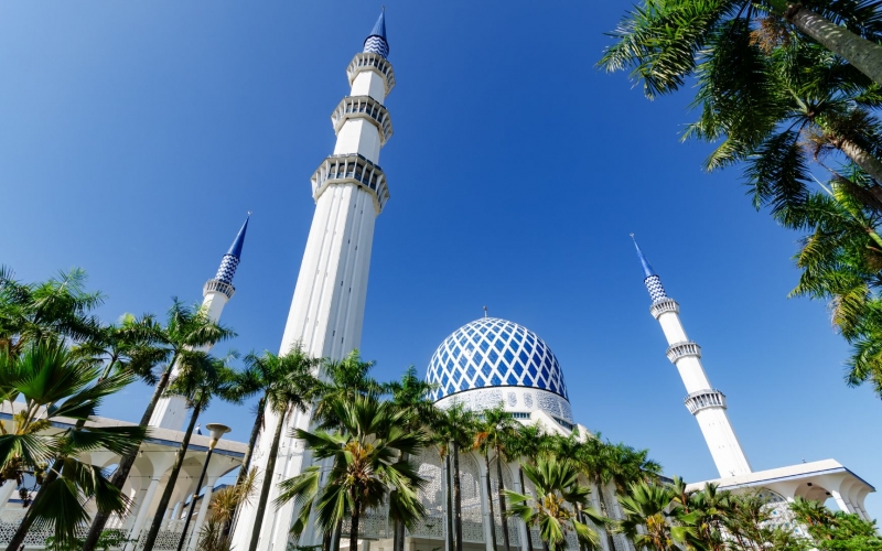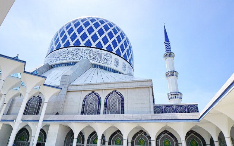 マレーシア最大のブルーモスクの正式名称「マスジッド・スルタン・サラフディン・アブドゥル・アジズ・シャー」。1988年に完成し、1つのドームと4本の尖塔で構成され、世界で4番目の規模を誇ります。