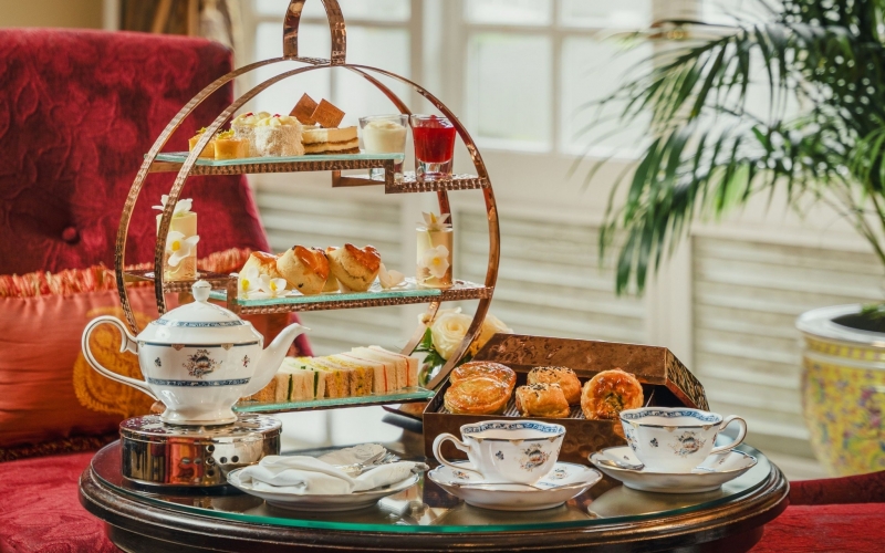 好みに合わせて会場を選べるのがマジェスティックホテルの魅力。蘭に囲まれたラウンジで南国らしい空間を楽しむことも、伝統的な英国風ラウンジでクラシックな優雅さに浸ることもできます。特別なティータイムを心ゆくまでお楽しみいただけます。