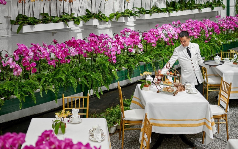 蘭に囲まれたラウンジ「オーキッド・コンサバトリー(Orchid Conservatory)
