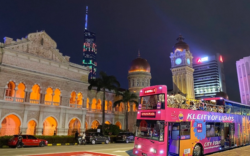 クアラルンプールに来たら外せない人気スポット、ブルーモスクとピンクモスクへ午後から出発。2つのモスクを効率よく巡ったあとは、ローカルグルメの宝庫・アロー通りへ。ガイドが周辺をご案内した後は、自由に食べ歩きをお楽しみください。夜は大人気のオープントップバスに乗車し、KLタワーやペトロナスツインタワーなど、クアラルンプールの夜景スポットを爽快ナイトドライブで満喫!