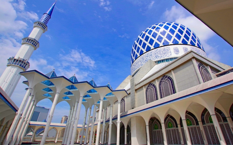 マレーシア最大のブルーモスクの正式名称「マスジッド・スルタン・サラフディン・アブドゥル・アジズ・シャー」。1988年に完成し、1つのドームと4本の尖塔で構成され、世界で4番目の規模を誇ります。