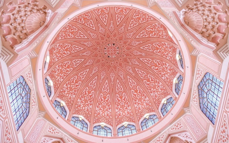 プトラ湖畔に建つ、淡いピンク色が可憐なマレーシアを代表するモスク。外観の壁から館内のモザイクまで、ピンク色に彩られた幻想的な雰囲気をご覧いただけます。湖とモスクのコントラストが美しい撮影スポットも多数!