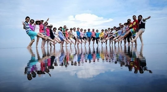 約1時間の自由時間です。鏡にように映るスカイミラーで沢山写真を撮りましょう!