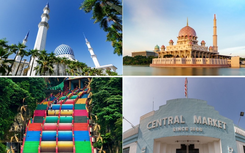 神秘的なバツー洞窟、青の外観が美しい ブルーモスク、淡いピンク色のドームが印象的なピンクモスクへ日本語ガイドがご案内。ピンクモスクでは、プトラジャヤの景観を水上から楽しめる クルーズ体験付き!