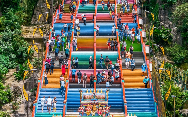 - ※現在バツー洞窟前のムルガン神像は清掃・改修作業の為足場が組まれ、神像が見えにくくなっております。観光自体は通常通り可能ですので洞窟内の神秘的な雰囲気や独特の空間を体感してみてください。(工事終了期間:2026年1月予定)