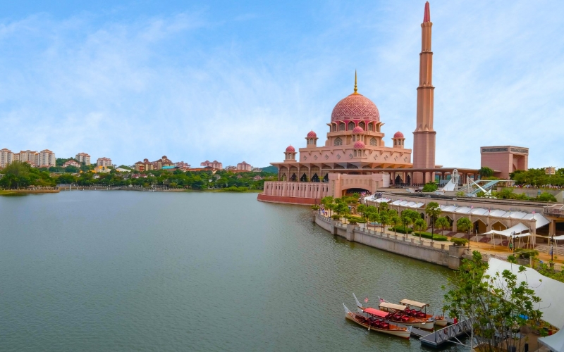 ピンクモスクの美しい全景を 水上から眺めるプトラジャヤクルーズ へご案内。写真映えスポットとしてもおすすめです。