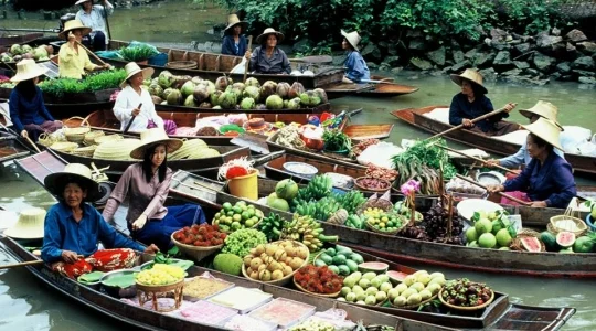 水上マーケットでは手漕ぎのボートに乗り、混雑して活気あふれる生のまーけっとを体験し、楽しむことができました。