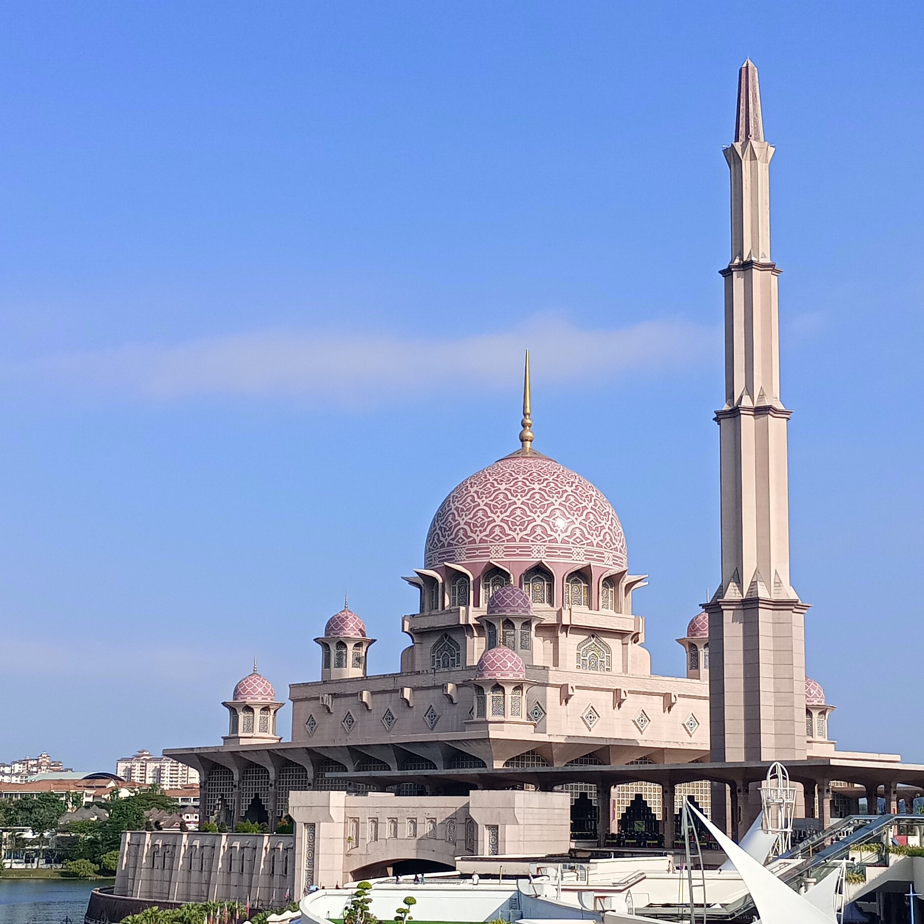 大変美しく綺麗なモスクでした。はじめにツアーの方がツアーの日程確認、マレーシアの気候、交通、政治、モスクなどの説明がありました。最初のブルーモスクは、混む前で人が少なくスムーズに中を見学することができました。現地のイスラム教の方が英語で丁寧に説明してくださり、お祈りの仕方を実演してくださいました。鮮やかなブルーとステンドグラスがとても綺麗でした。次に訪れたピンクモスクは、たくさんの方が訪れていました。ピンクの色で温かい雰囲気のモスクでした。ツアーの方が日本語でお祈りの方向や回数、メッカについての説明してくださり、とてもわかりやすかったです。クアラルンプールから距離が遠いので効率よく回ることができました。どうもありがとうございました。😄
