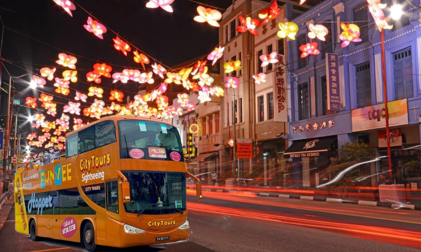 - ・2階建てオープントップバスでチャイナタウン経由の夜景ドライブ