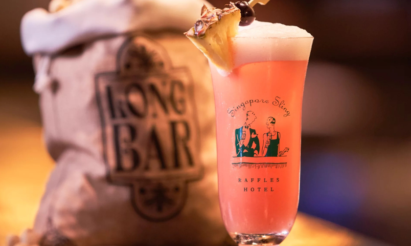 シンガポールスリング発祥の地!名門ラッフルズホテルのロングバー(Long Bar)1ドリンク + ピーナッツ