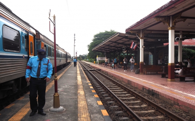 エメラルド寺院です。守っている人の顔の牙の向きが2種類あり、ガイドさんから説明でよく理解できました。