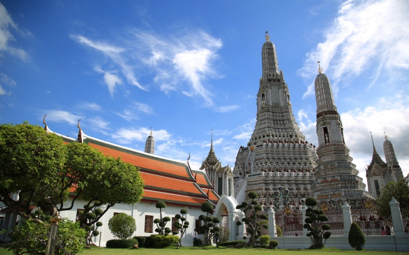チャオプラヤ川沿いにそびえる美しい仏塔が目を引く、バンコクを代表する寺院です。