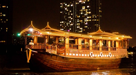 新年の幕開けを豪華バーンカニタクルーズで迎えませんか?高級タイ料理の名店として名を馳せる「バーンカニタ」。贅沢なフルコースをご堪能頂ける、パンダバス一押しのカウントダウンクルーズが登場!乗船時には、ウェルカムドリンクでおもてなし。コロニアル調にデザインされたライスバージでチャオプラヤー川を約3時間遊覧。バンコクらしい夜景を眺めながら、大切な人と素敵な新年を迎えましょう!予約はこちらから!お帰りも安心♪バンコク市内のご宿泊ホテル送迎付きプランもご用意!