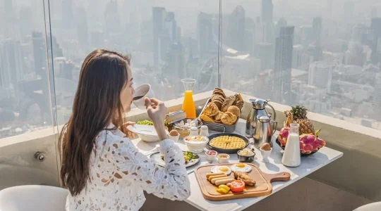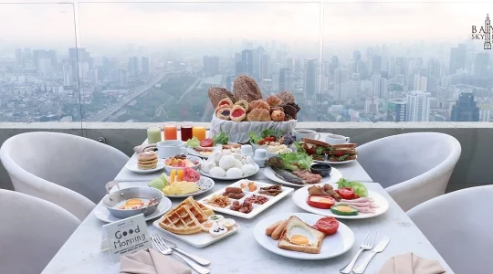 豊富な種類のバイキングと景色を楽しむオススメのミールクーポンです。バンコク一の高さを誇るバイヨークスカイ。ここから360度、何の障害もなく市内全てを見渡せる絶景と豊富な種類のバイキングは値段以上の価値があり、好評です。