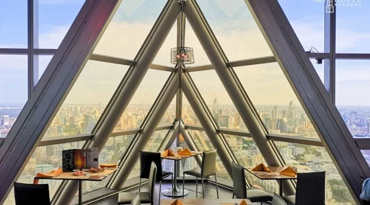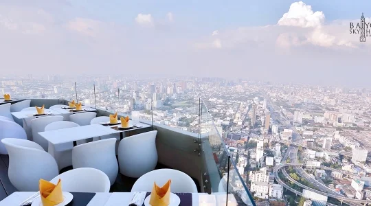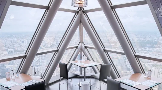 - レストランは現在約1時間半の入れ替え制となっております。ご希望のお時間をお選び下さいませ。 レストランの都合により76階となるか、あるいは78階となるかは当日、確定されます。受付でご確認下さい。 お食事の後は、更に屋上階(84階)の展望台にてバンコク一の高さから360度の景色をお楽しみ頂けます。 クーポンはご予約確定通知書をお送りさせて頂く際に添付致しますので、直接バイヨークスカイホテルレストラン受付(19階)にてご提示下さいませ。高層階のレストランまでご案内致します。最寄り駅:「BTSチットロム駅」下車、TAXIで約10分です。