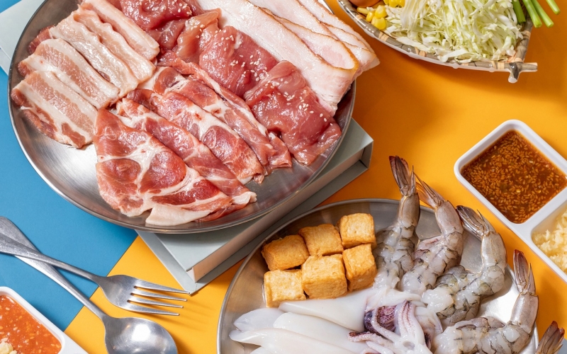 ジューシーなお肉、海鮮、野菜を炭火で焼き、旨みたっぷりのスープで煮込む贅沢なひととき。