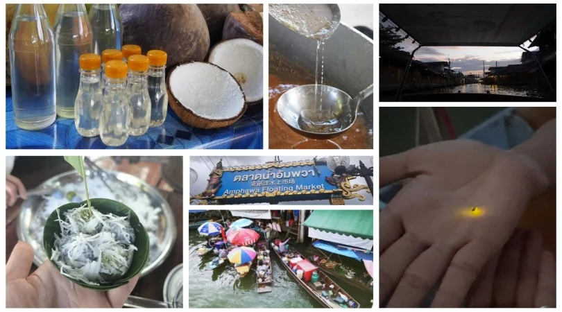 午後半日プラン・ココナッツオイル&タイ伝統菓子「カノムトム」作り+アンパワー水上マーケット + ホタル観賞ナイトクルーズ
