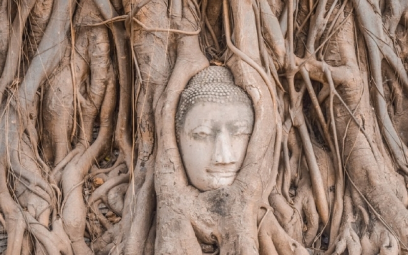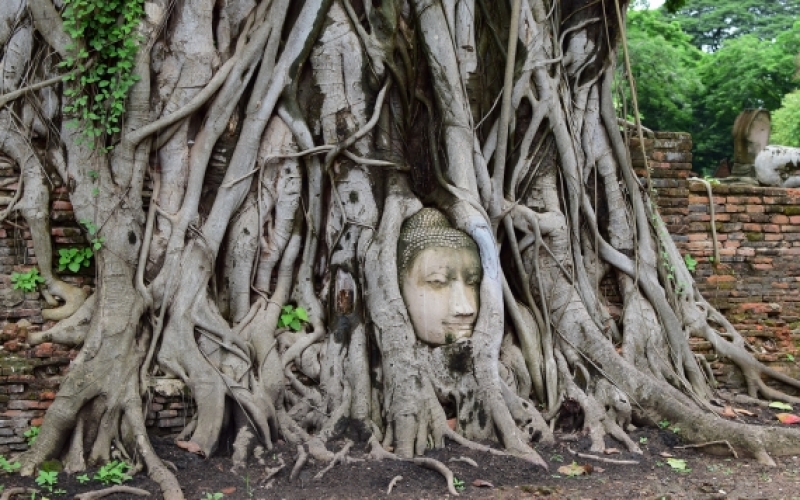 木の根に取りこまれた仏頭のある「ワット・マハタート」へご案内