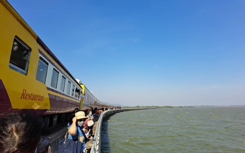 毎年大人気のツアー、今年もやります!タイ国鉄が期間限定で運行する特別列車に乗って日帰り鉄道の旅へ。列車は巨大な「パーサック・チョンラシット・ダム」の上で一時停車。水位すれすれを走る列車を降りて、線路の上で写真撮影をお楽しみください。さらにパンダバスのツアーでは、ひまわり畑にもご案内♪一面に咲き誇るひまわりは見ごたえ抜群です!お帰りはクメール遺跡と猿の街・ロッブリーを車窓から見学。充実のスケジュールでご案内します。