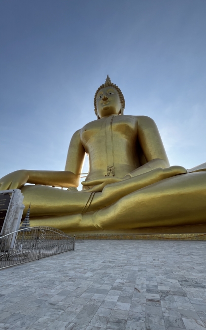 大仏像に向かって手を合わせる地獄に落ちた亡者