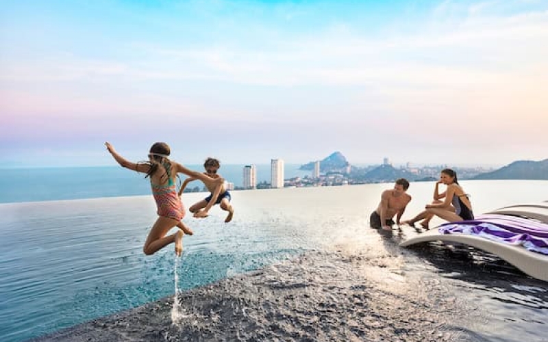 ・ 26階のスカイバーやインフィニティプールからは、ホアヒンの街並みと海を一望。夕暮れ時の景色は特におすすめです。