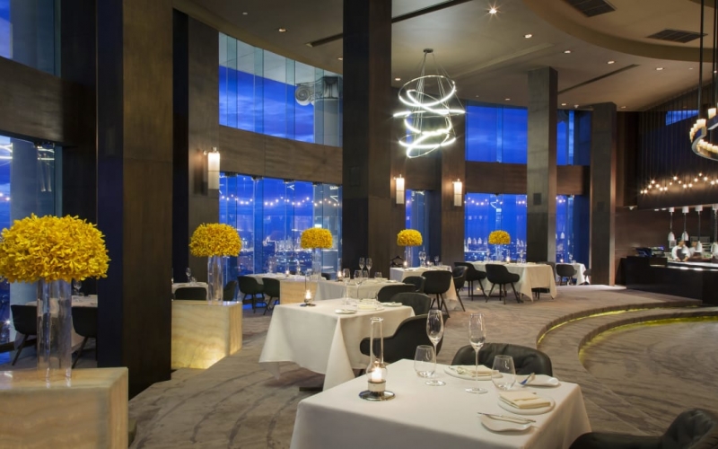 最上階には、世界的に有名な「Sky Bar」や「Flute Bar」などのルーフトップバーがあり、年越しには花火を眺めながらの特別なひとときを過ごすことも。 宿泊者なら、専用のスイートルームからゆったりと景色を楽しめるのが最大の魅力です。まさに「空に泊まる」ような贅沢な体験が叶います。 -