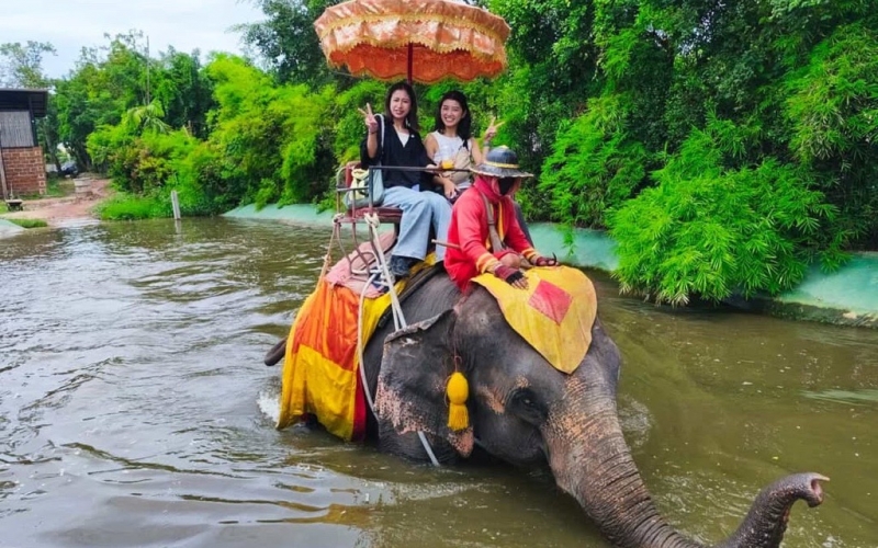 マーケット散策にボート&列車体験!象乗りは事前予約でお得に追加♪