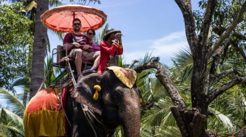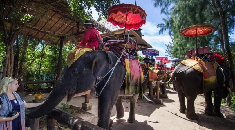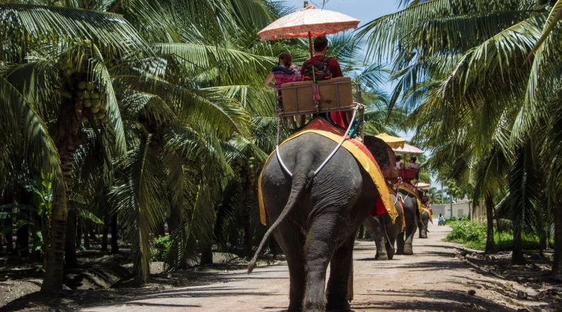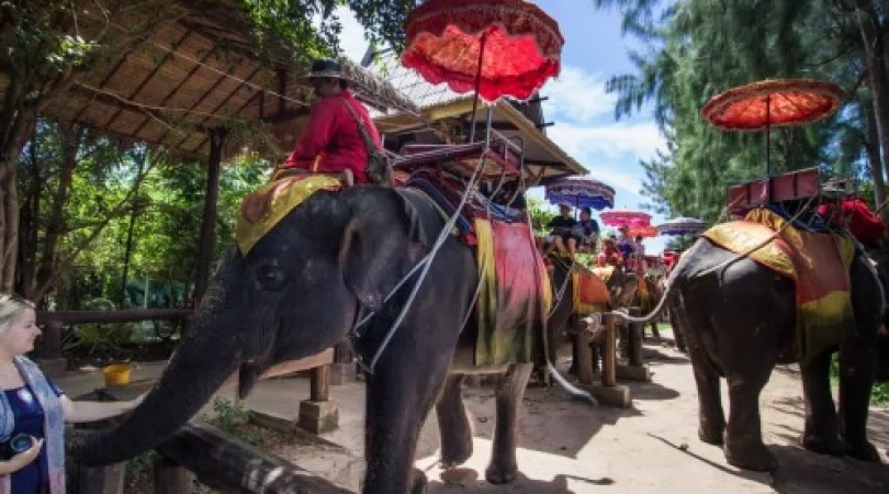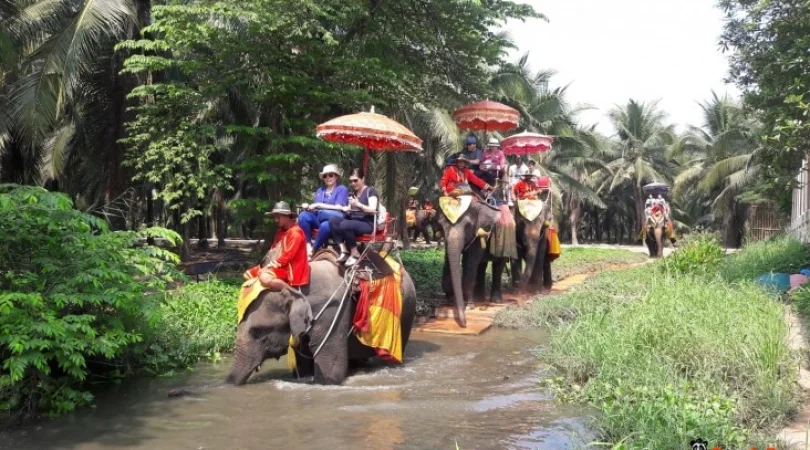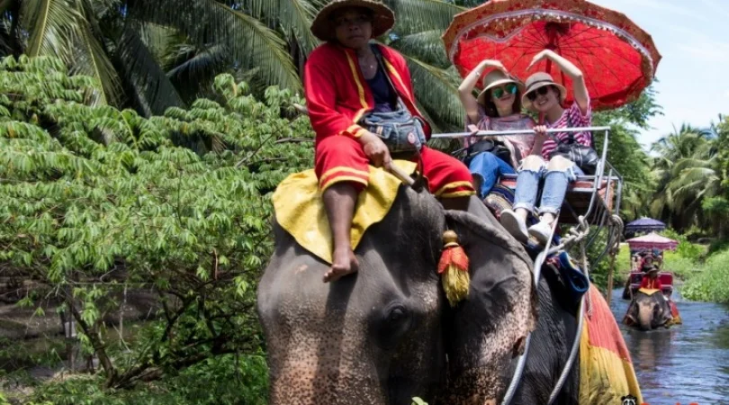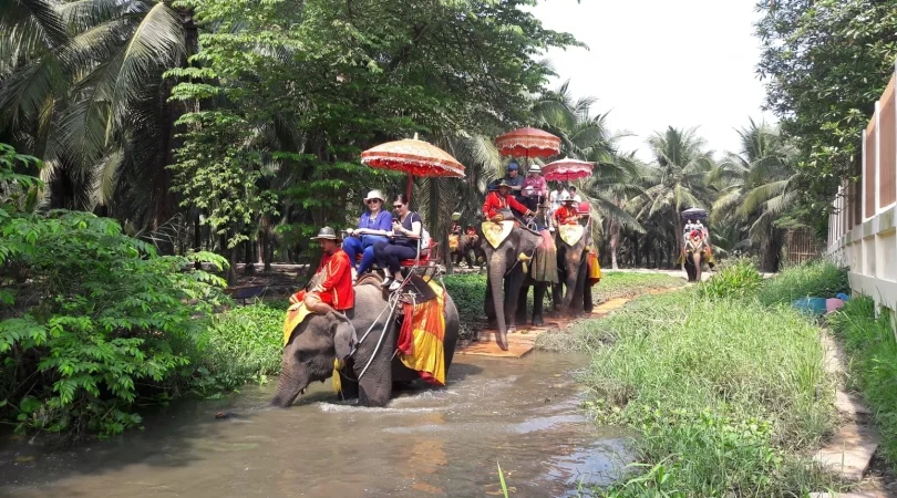 本格象乗りと水上マーケット