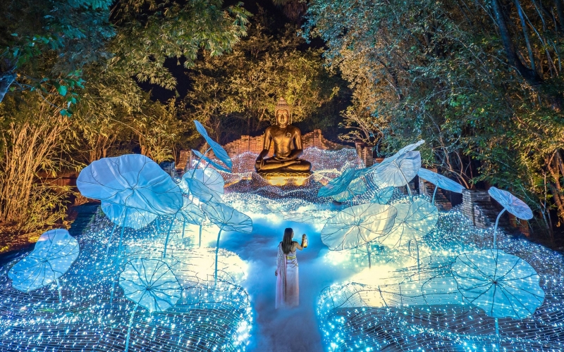在住者も旅行者も一度は撮りたい、タイ版なばなの里で伝統衣装フォト&イルミネーションの特別体験。