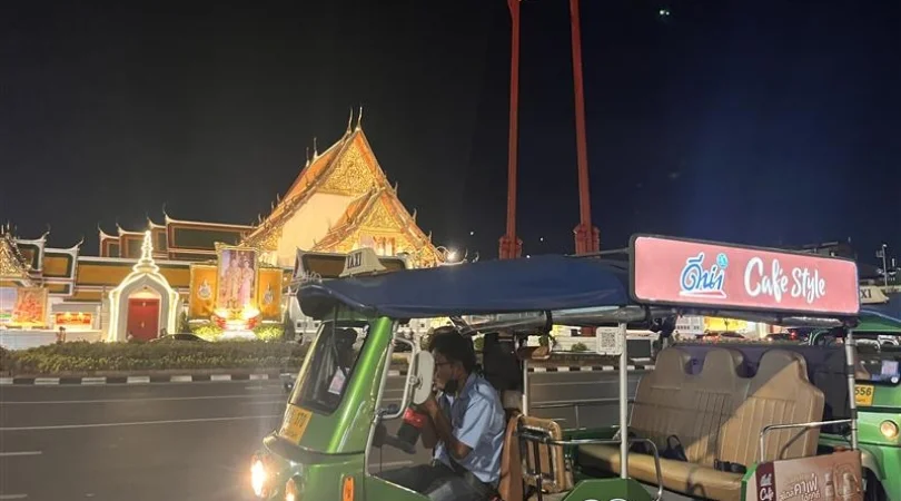 バンコクの夜を彩る名所たちを電動トゥクトゥク「MuvMi(ムーブミー)」で巡る環境に優しいツアー。中華街・ヤワラートのネオンが輝く通りを抜け、荘厳なジャイアントスイング、民主記念塔のライトアップを眺めながら王宮エリアへ。そして、チャオプラヤー川の対岸に浮かび上がるワット・アルンの美しいシルエットを観よう!静かで快適なMuvMiの乗り心地と、開放感あふれる夜の風景。エコでおしゃれに、バンコクの夜景スポットのハイライトをご案内。