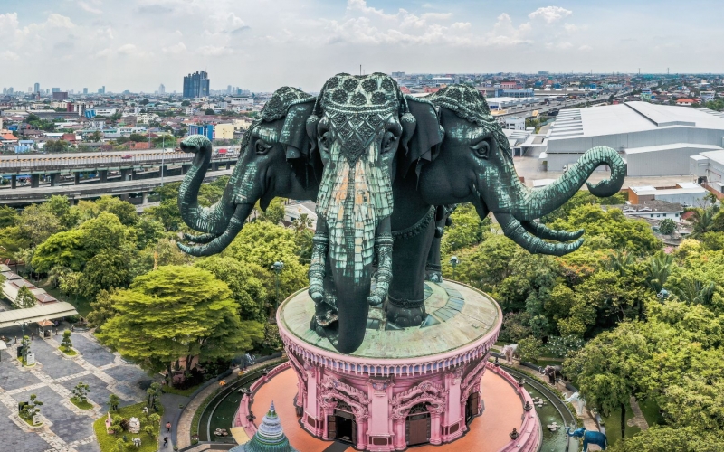 幻想的なエメラルドグリーンの天井が美しい「ワット・パクナム」や、“願いが3倍速で叶う”と話題の「ピンクガネーシャ」をはじめ、フォトジェニックな「エラワンミュージアム」、チャオプラヤ川沿いに輝く「ワット・アルン」まで、見どころをぎゅっと詰め込みました。日本語ガイド同行で安心。昼食はランチなし、または三大タイ料理付きからお選びいただけます。