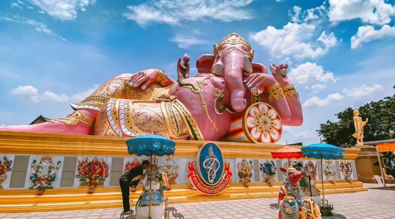 ピンクガネーシャ×話題の“タイの銀閣寺”|フォトジェニック2大スポットを巡る半日ツアー(ボート体験付き)